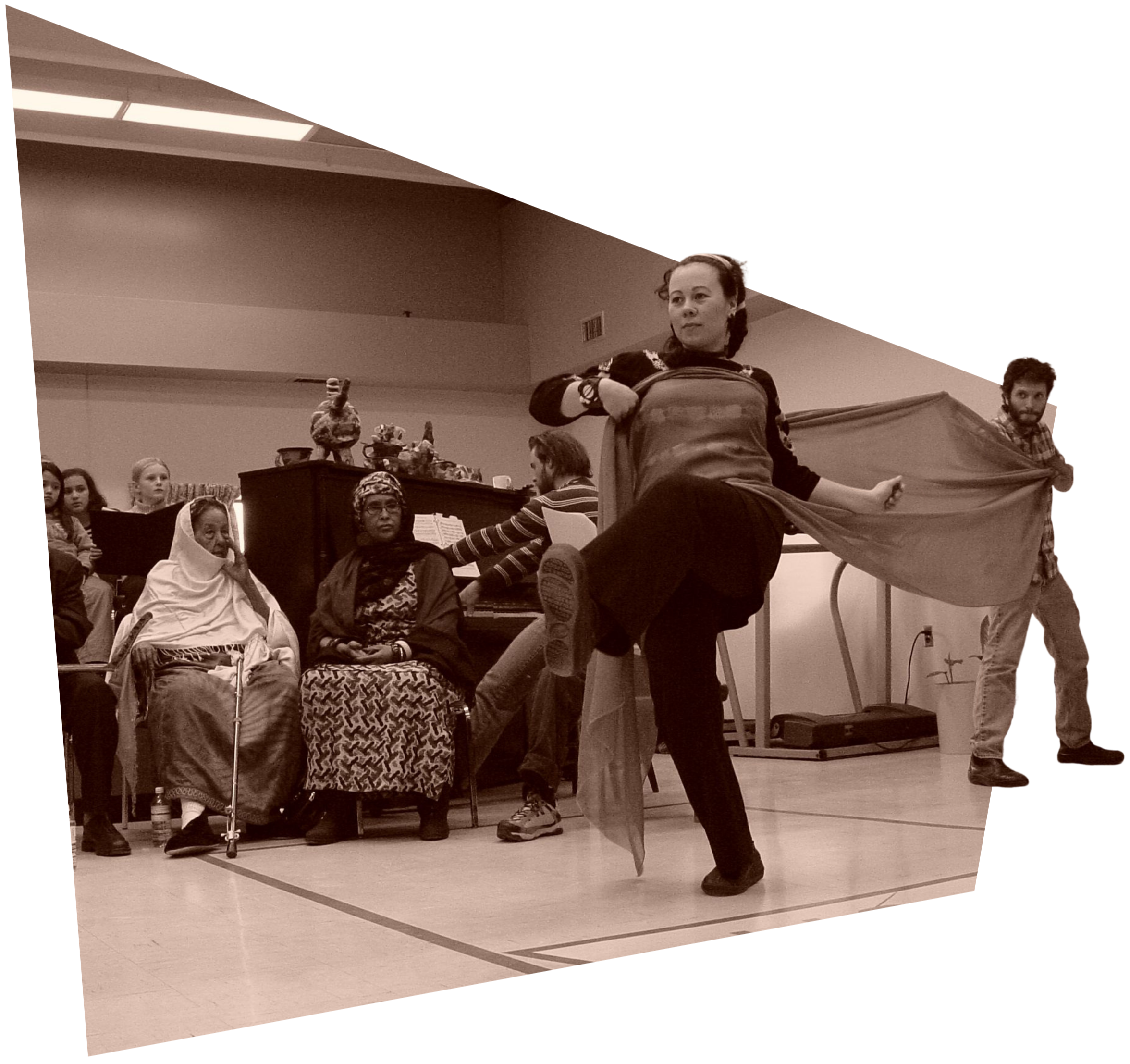 The Etobicoke residency culminated in the production "A Bridge of One Hair," which premiered at Harbourfront Centre as part of the World Stage festival in 2007. This large-scale, participatory performance featured original music by Alice Ho, poetry by Hawa Jabril and Duke Redbird, and brought together hundreds of community participants in a powerful theatrical celebration. The production earned a Dora Mavor Moore Award nomination for Outstanding Costume Design.